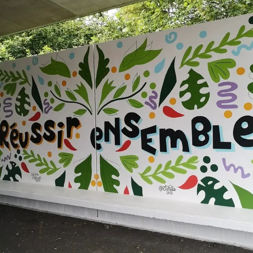 Pendant 3 ans, elle se plonge alors dans l’étude du lettrage, de la composition typographique, de l’utilisation des couleurs et de la création de motifs abstraits, végétaux et géométriques. Ses inspirations la mènent à Paris, Bordeaux et Barcelone pour suivre des workshops auprès d’artistes reconnus. Le pari est osé : autodidacte elle s’accroche à son rêve et quitte l’éducation nationale en 2021.