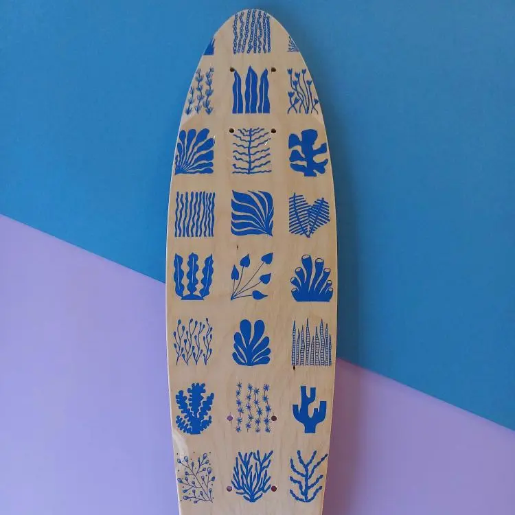 Elle propose également des créations digitales et des boards décorés. Si l’artiste française Koralie l’inspire dans le domaine de la phyllotaxie (géométrie dans la nature), elle apprécie aussi beaucoup les travaux de Stefan Kunz, Stéphane Lopes ou encore Phoebe Cornog et a un grand respect pour le «maître» Diego Rivera.