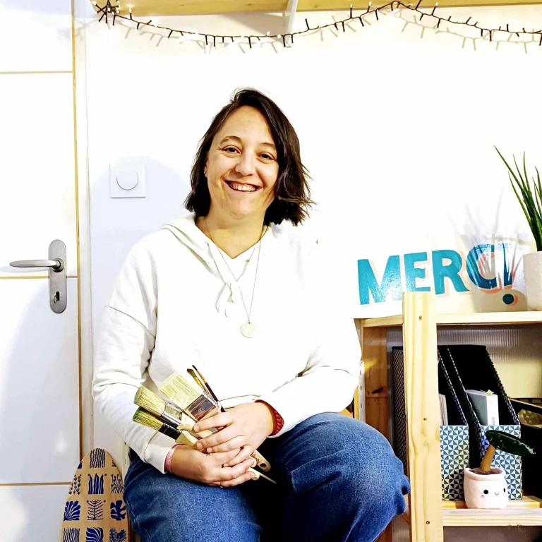 L’histoire de Julie Linon est une histoire de reconversion à 180°. Julie a une passion depuis toujours : le dessin. Et d’aussi loin qu’elle s’en souvienne, elle ne se déplace jamais sans son carnet et ses feutres. Après avoir suivi des études d’espagnol et avoir été professeur pendant 10 ans, la réalité de sa passion la rattrape. Pour donner du sens à sa vie, dessiner, créer, travailler la forme, entrer dans la couleur, manipuler la matière… tout cela devient impératif. Pendant 3 ans, elle se plonge alors dans l’étude du lettrage, de la composition typographique, de l’utilisation des couleurs et de la création de motifs abstraits, végétaux et géométriques.