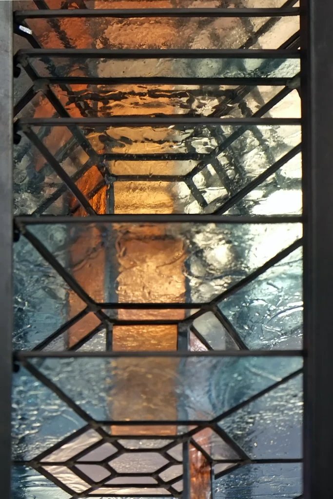 Dans ses réalisations, il y a toujours une interrogation sur la perception, une double ou triple lecture, des écritures très maitrisées et des écritures aléatoires. Souvent Mathilde recherche le défi technique, celui du verre travaillé en matière, celui du plan qui devient volume, le plomb sculpture…