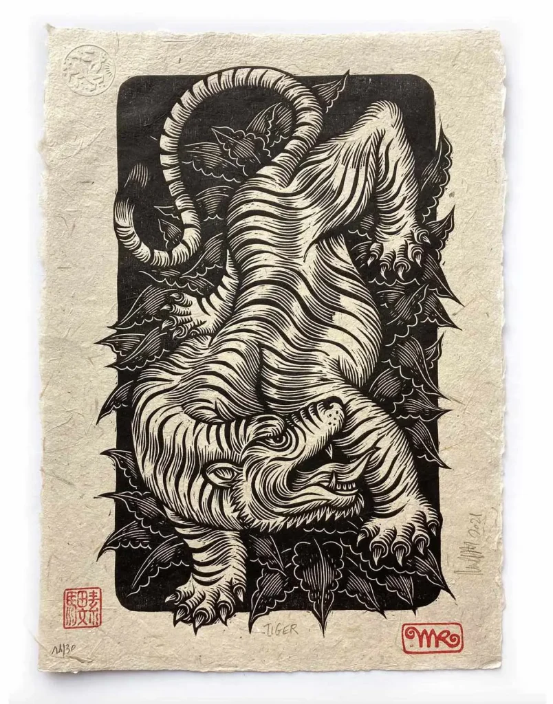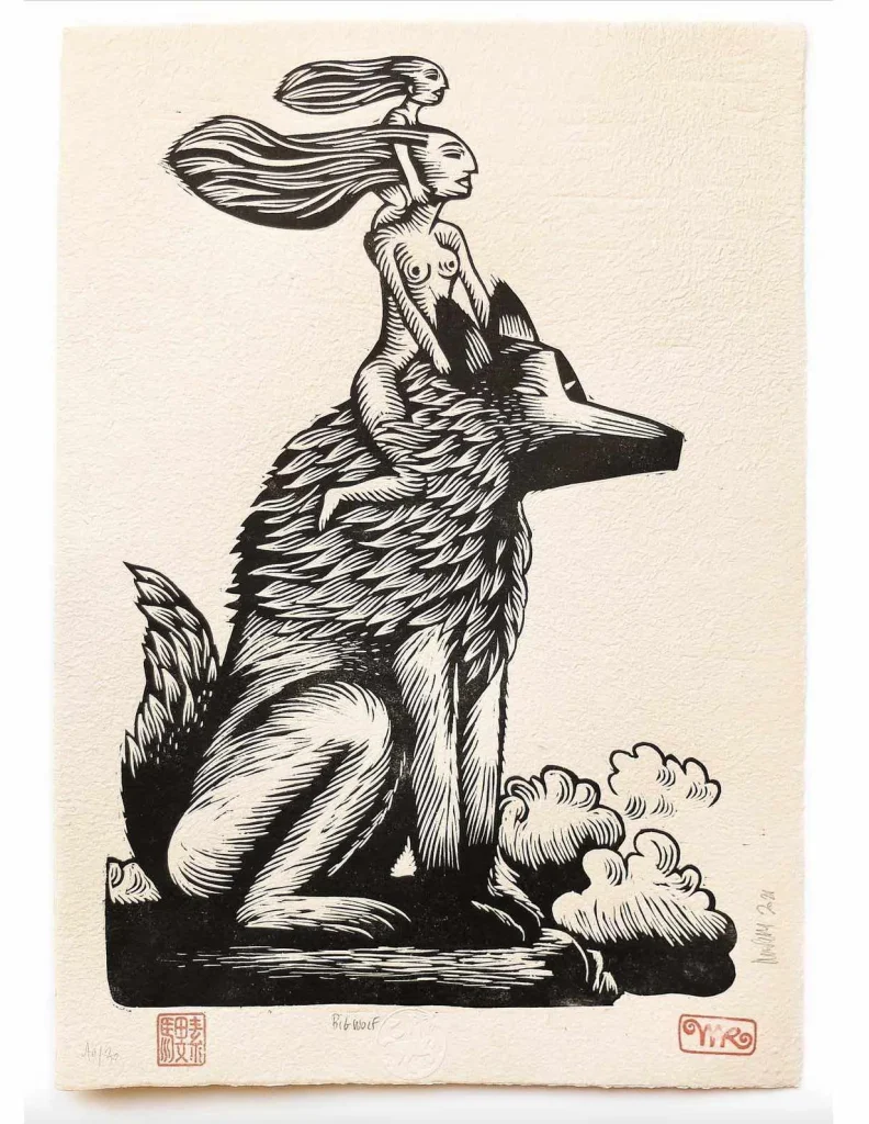 Matt Roussel crée des bois gravés peints, des estampes, et des céramiques raku.